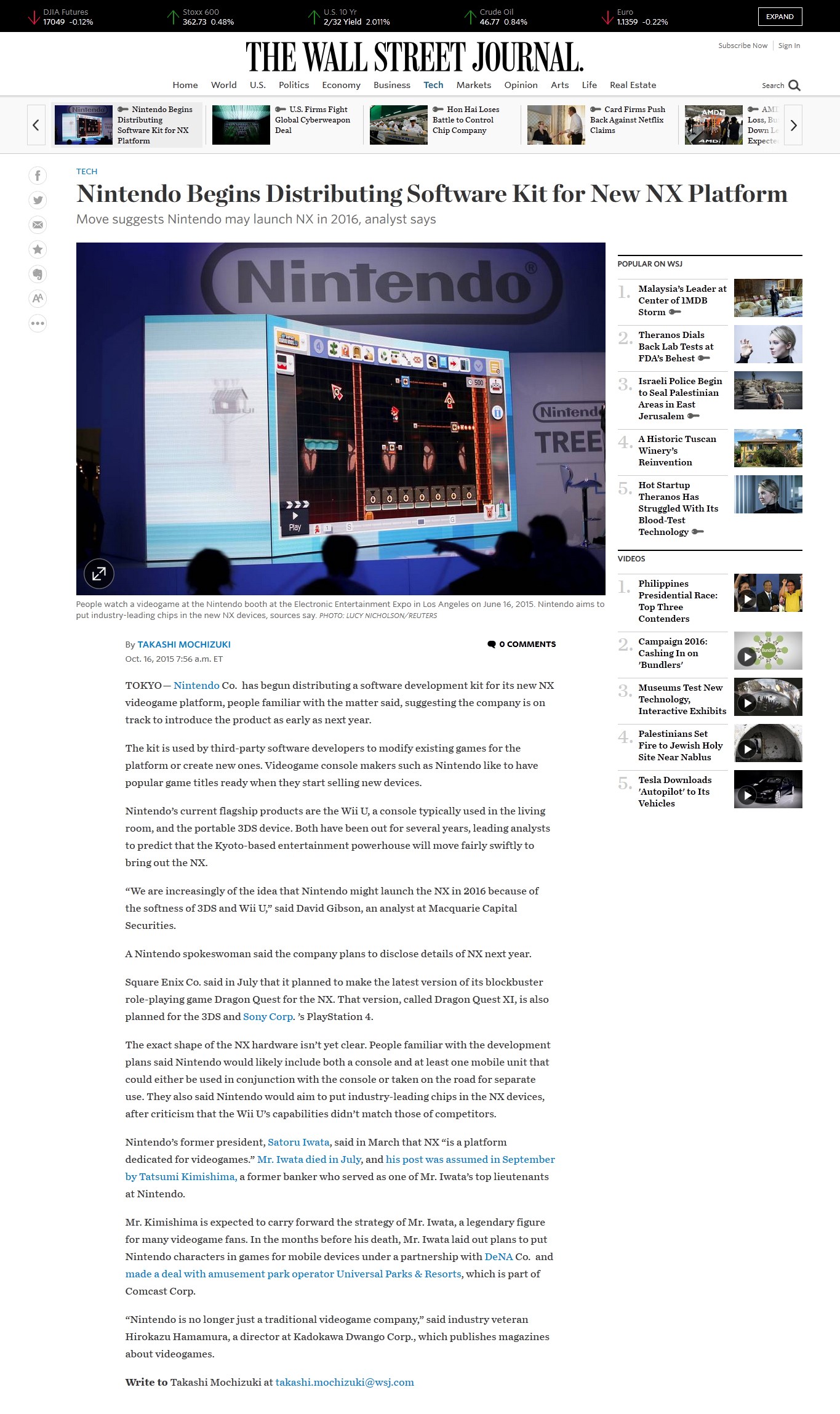 Ha estat el diari The Wall Street Journal qui ha anunciat que ja s’estan distribuint els primers kits de desenvolupament de la propera consola de Nintendo, la Nintendo NX (nom provisional).