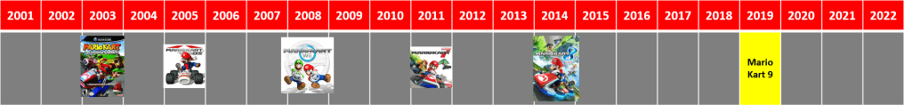 És un dels casos més descarats. Gairebé no cal dir res, el gràfic parla per si sol. Mario Kart 9 està més que acabat des del 2019. De fet, poso la mà al foc que Mario Kart 10 ja encara la recta final del seu desenvolupament.